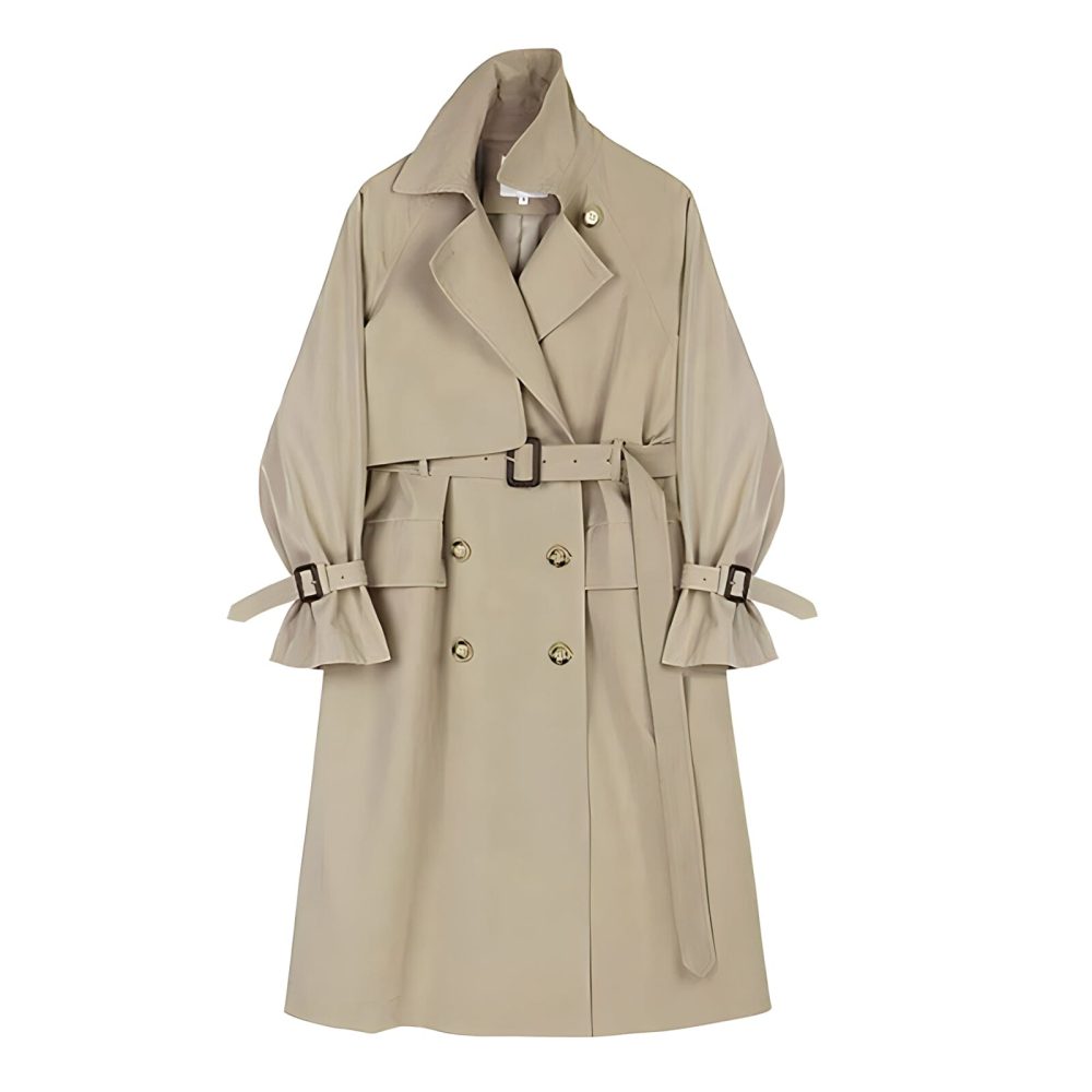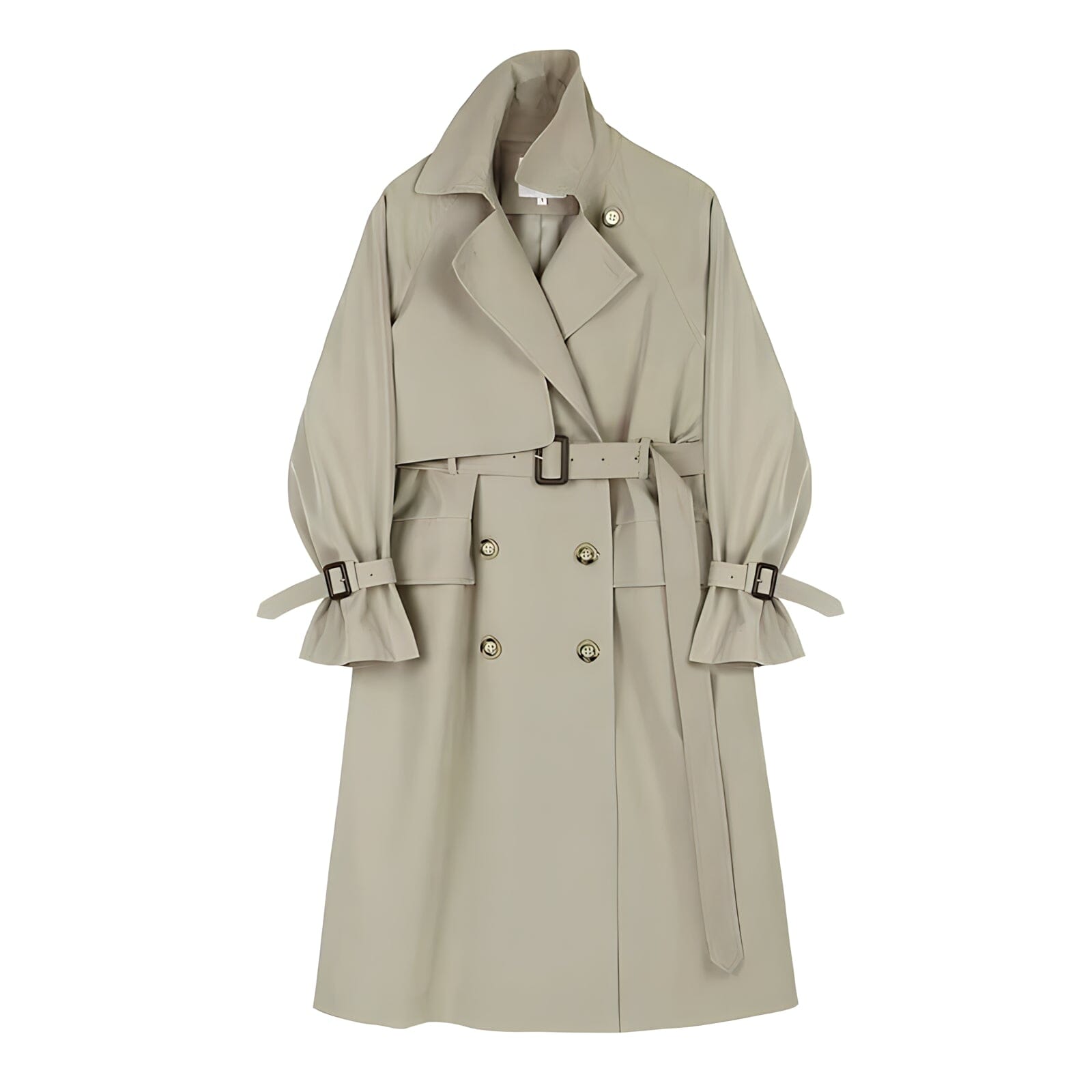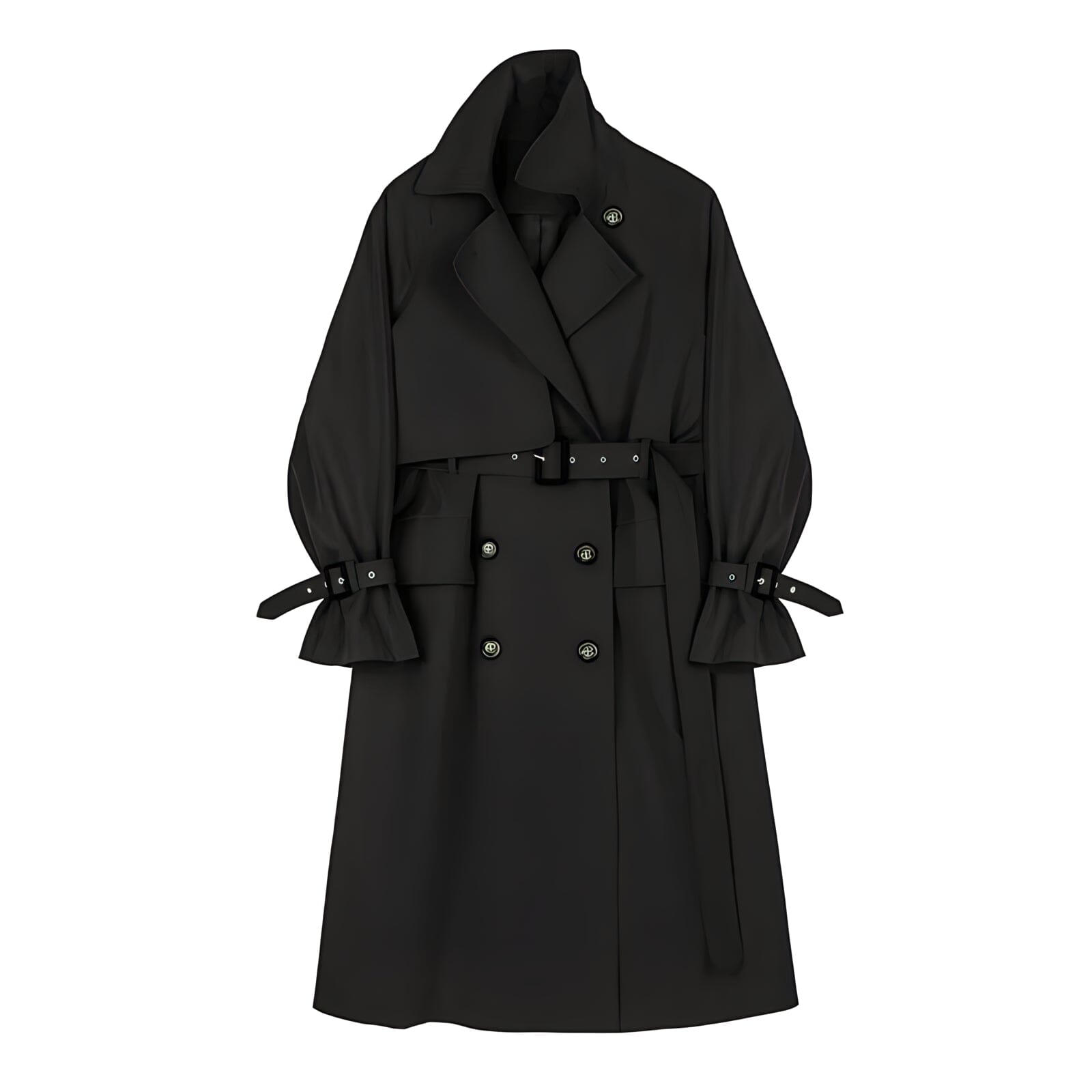 Designed with progressive modern woman in mind, the long sleeve trench coat offers a unique blend of high street fashion and casual chic. Featuring a premium polyester-cotton fabric blend, notched turn-down collar, accent sashes and long-tail accent belt for added style and versatility. Exclusively for the trendsetters.